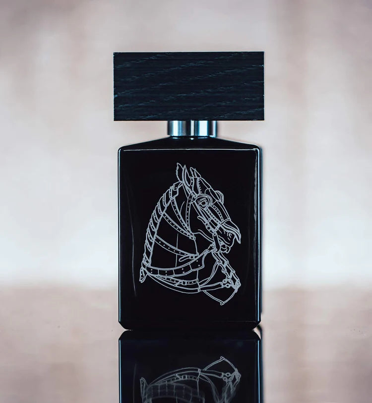La fragranza crea un'apparizione di cavallo e cavaliere: metallo brillante, cognac, tabacco da fiuto e sapone da sella su una base di oud, cuoio animale e fieno.