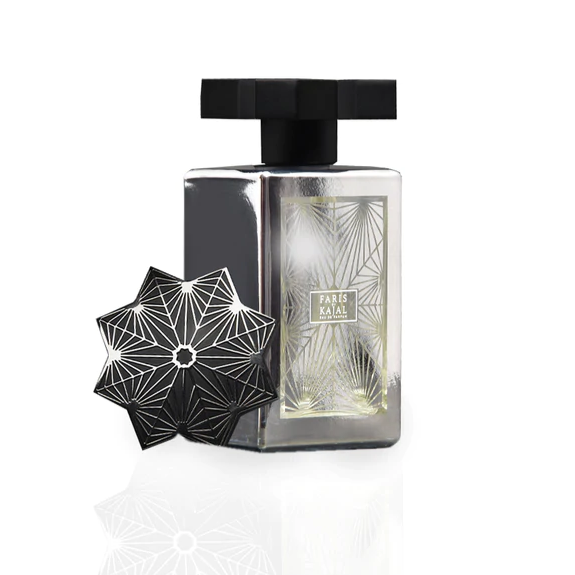 "Volevamo che Faris incarnasse la definizione di forza, rispetto e coraggio... per questo abbiamo scelto l'effetto metallizzato argento sul flacone, sulla scatola e sul tappo", descrive il co-fondatore e Chief Creative Officer di Kajal, Moe Khalaf: L'argento simboleggia una forza sottile e rappresenta la purezza. Spiritualmente, l'argento è considerato uno specchio dell'anima, che ci aiuta a renderci conto di noi stessi come ci vedono gli altri.